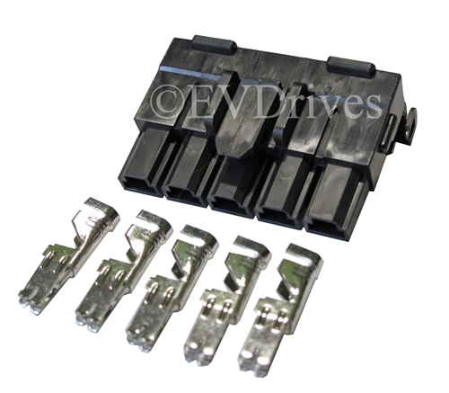 Molex connector for mating with Sevcon 5 pin DC-DC Converters. Includes tinned 10-12 gauge copper pins.