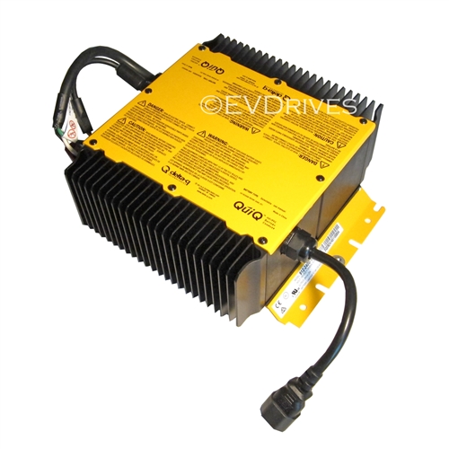 The Delta-Q QuiQ charger is an advanced, high frequency charger that is small and light enough to be installed on-board the vehicle. The charger is completely sealed, is passively cooled without the use of fans, and can withstand temperature extremes, moisture and high vibration. The QuiQ charger is programmed with 10 charge profiles for both wet and sealed batteries. It can be used worldwide as it operates at both 120 volts and 230 volts.