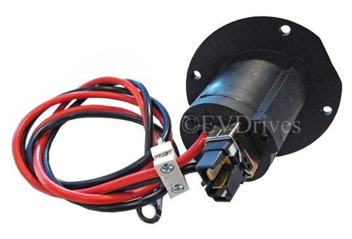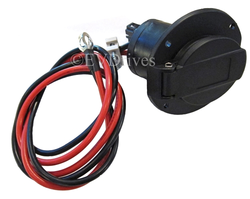 This is the cart side, battery charge plug receptacle, with wire harness, for a 36, 48V & 72V StarCar. Note, this will not work with the similar looking Club Car plug.
