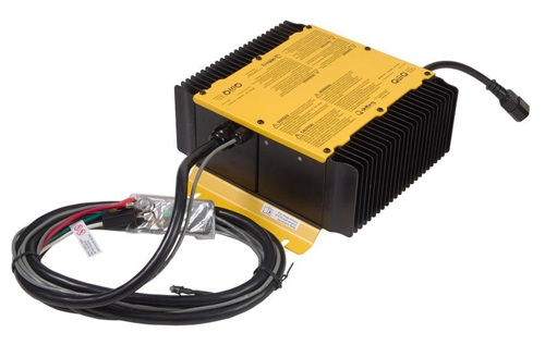 The Delta-Q QuiQ charger is an advanced, high frequency charger that is small and light enough to be installed on-board the vehicle. The charger is completely sealed, is passively cooled without the use of fans, and can withstand temperature extremes, moisture and high vibration. The QuiQ charger is programmed with 10 charge profiles for both wet and sealed batteries. It can be used worldwide as it operates at both 120 volts and 230 volts. These are commonly used on golf cars, electric vehicles, floor scrubbers, and battery powered sweepers.
