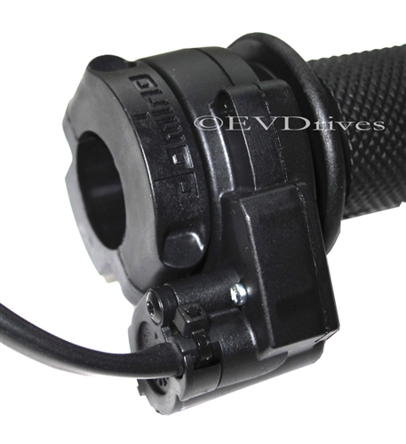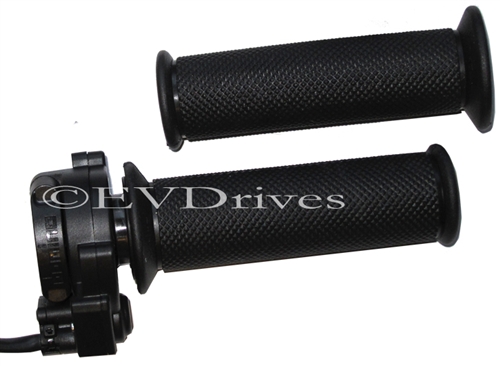 The Italian made Domino twist throttle is high quality with a five wire output and a built in micro switch for added safety. The potentiometer can be configured in a 2 or three wire mode outputting either 0-5K or 5K-0 ohm.