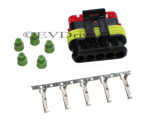- Comes with mating Tyco Superseal 5 connector with pins and seals