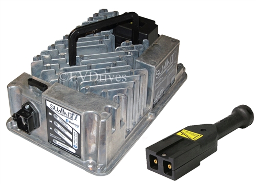 The Lester Summit II is a 650 watt industrial battery charger designed with a rugged die cast aluminum enclosure (sealed to IP66 standards) for high reliability and long life.